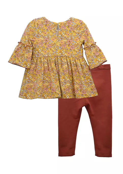 - Shirt: pullover, round neck, 3/4 bell sleeves