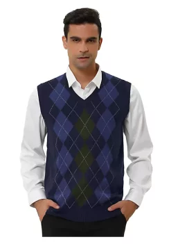 Outlet 💯 Lars Amadeus Men’s Casual Argyle Vest Sweater V Neck Slim Fit Sleeveless Knit Pullover ❤️