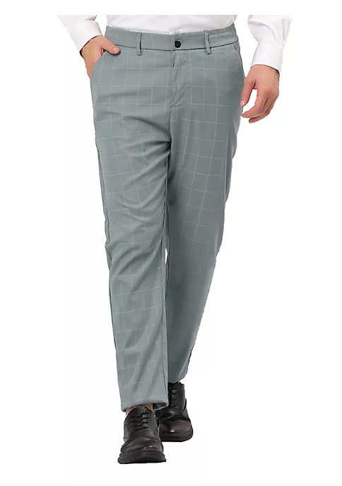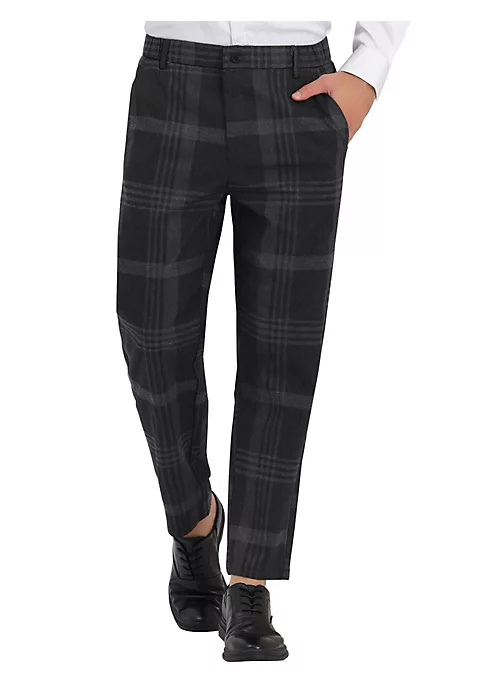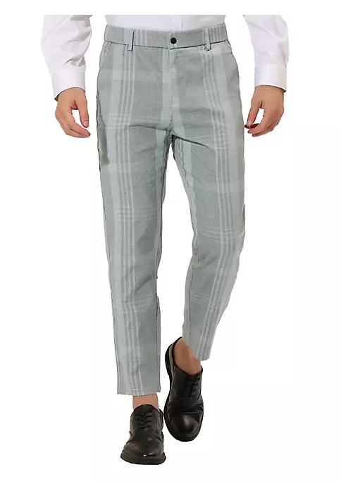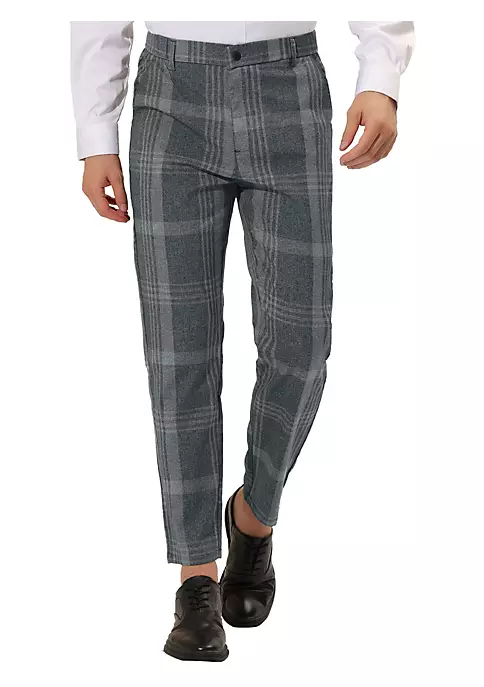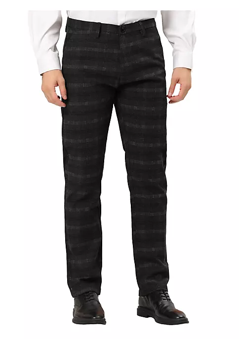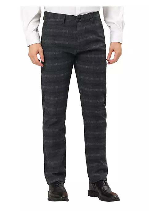 Outlet ⭐ Lars Amadeus Men’s Formal Trousers Color Block Slim Fit Flat Front Plaid 👗 Dress Pants 🔔