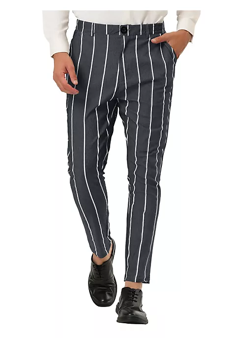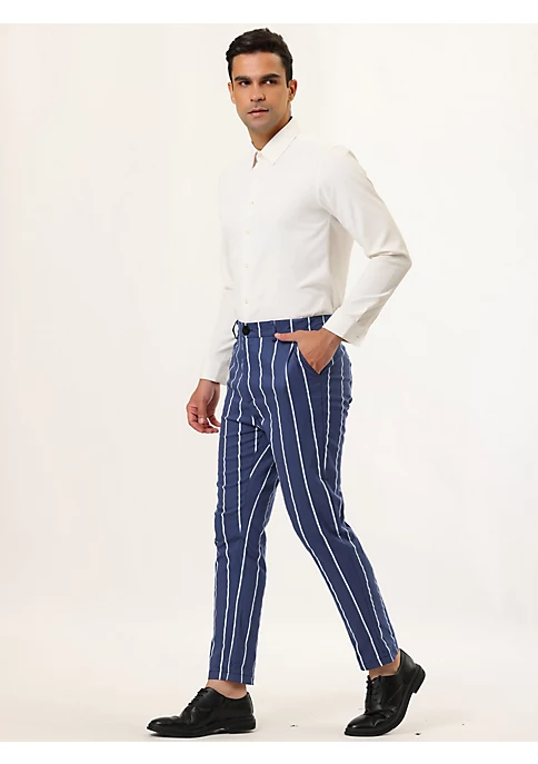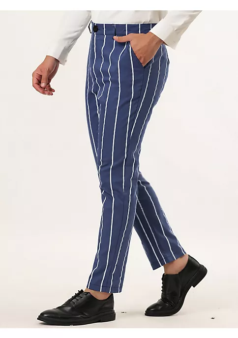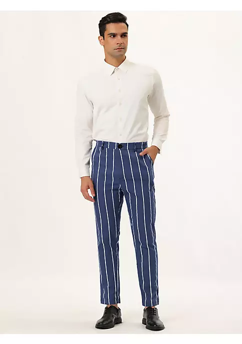 Outlet ⭐ Lars Amadeus Men’s Formal Trousers Color Block Slim Fit Flat Front Plaid 👗 Dress Pants 🔔