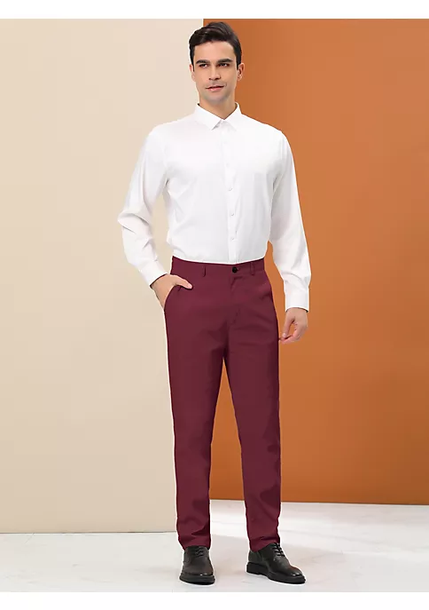 Outlet ⭐ Lars Amadeus Men’s Formal Trousers Color Block Slim Fit Flat Front Plaid 👗 Dress Pants 🔔