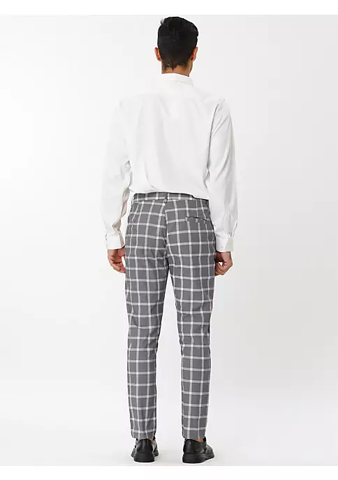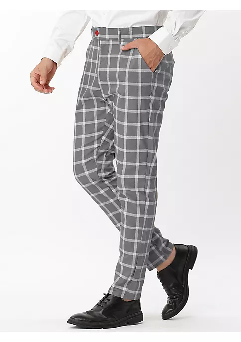 Outlet ⭐ Lars Amadeus Men’s Formal Trousers Color Block Slim Fit Flat Front Plaid 👗 Dress Pants 🔔
