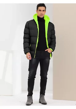 Coupon 😍 Lars Amadeus Men’s Hooded Puffer Jacket Winter Warm Full Zip Contrast Color Hoodie 🧥 Coat 🔥
