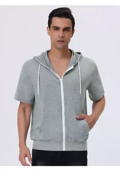 Best deal π Lars Amadeus Men’s Hoodies Solid Color Zip Up Short Sleeve Jackets π₯