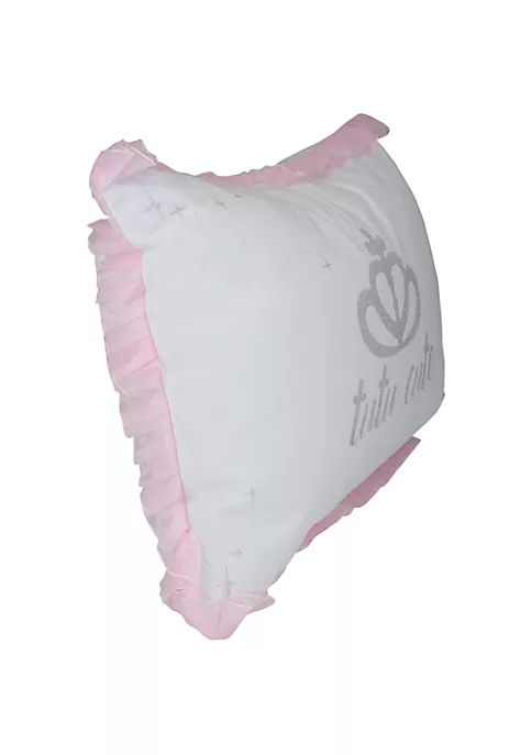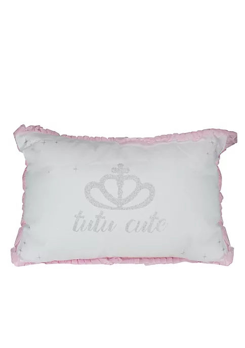 Celebrate the aspiring prima ballerinas in your life with this adorable throw pillow. Glittered lettering paired with ruffled trim make this pillow the perfect to your little ballerinaโs decor. Perfect for birthdays.