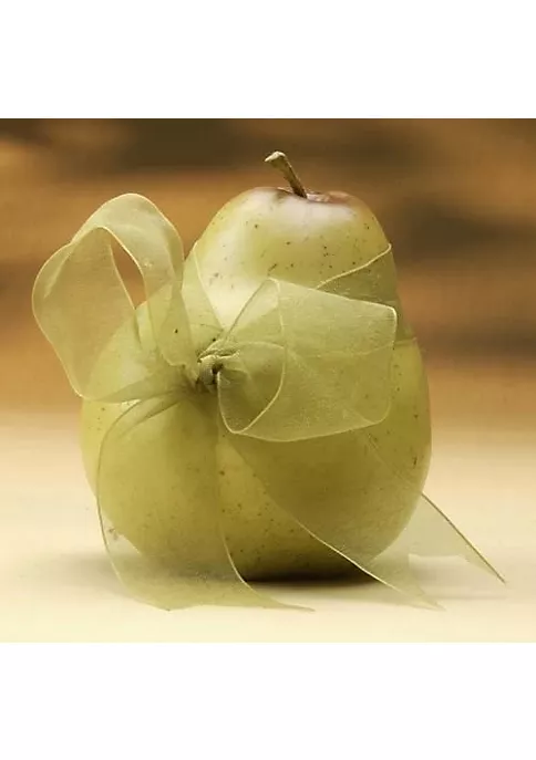This elegant pear is accented with a coordinating sheer green bowed ribbon