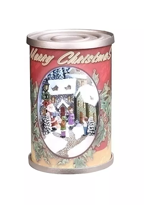Christmas scene inside the can is 3-dimensional