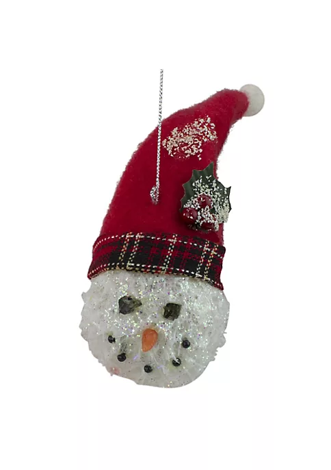 Create a magical winter wonderland with this Snowman head in a plaid hat. This Christmas ornament adds a creative twist to your festive bash. It adorns your hallways stairways or doorways providing a neat finesse to your seasonal decor.