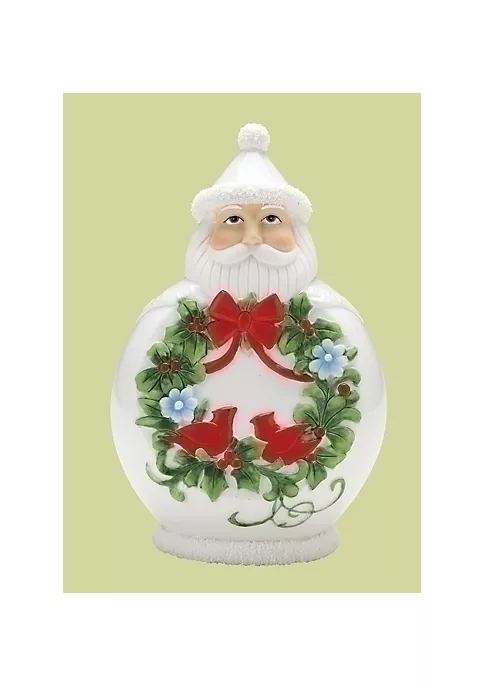 Santa figure features a Scandinavian design on the front with red birds sitting in a wreath